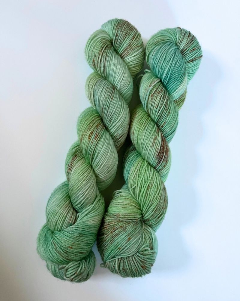 If you are a blue/green lover this month is for you! A watercolor skein of vibrant blues and greens with some crispy speckles added on top!
