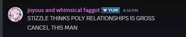 hey guys we should cancel @stizzlesilly.bsky.social He hates poly rleationships #killstizzle