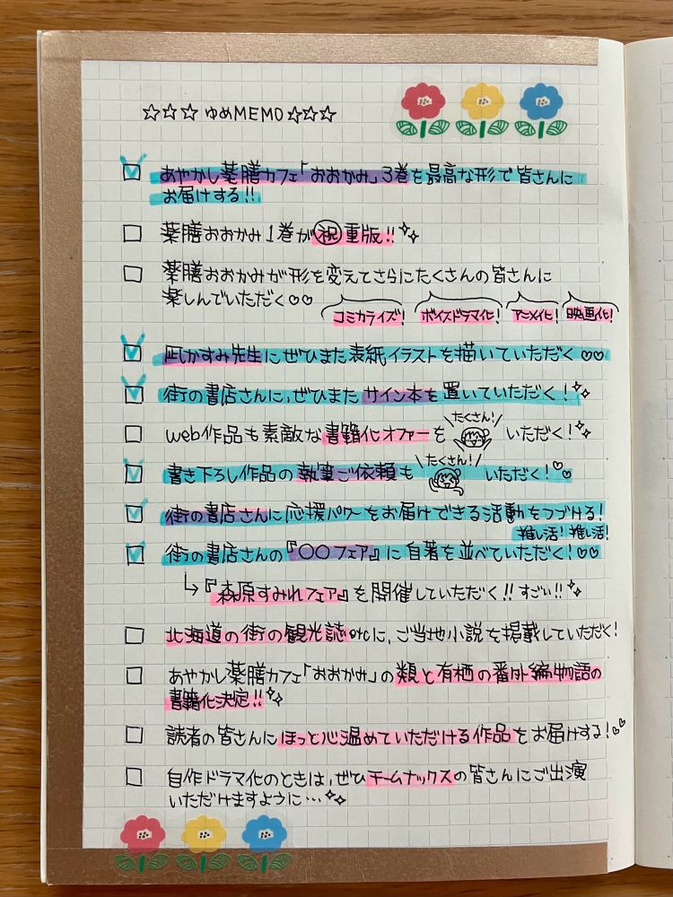 先日久しぶりに『ゆめMEMO』を確認したのですが、いくつか叶っているものがあることに気づきぱあっとなりました!⸜(◍ ´꒳` ◍)⸝パアッ✨✨