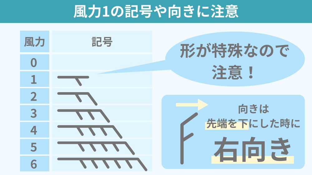 ③風力1の記号や向きに注意する