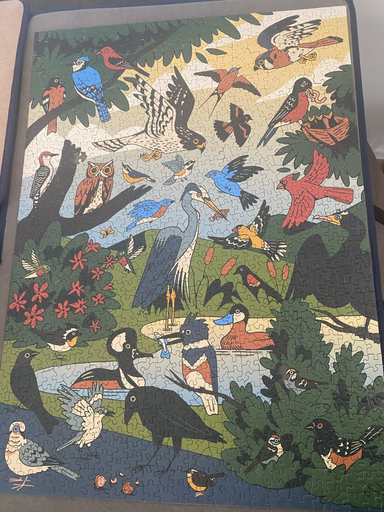 Finished this incredible puzzle from Bird Collective! 😍 Two pieces were missing no thanks to some meddling kitty cats!