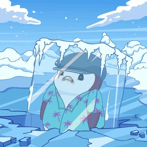 ALT: a cartoon penguin wearing a hat and a shirt with palm trees on it