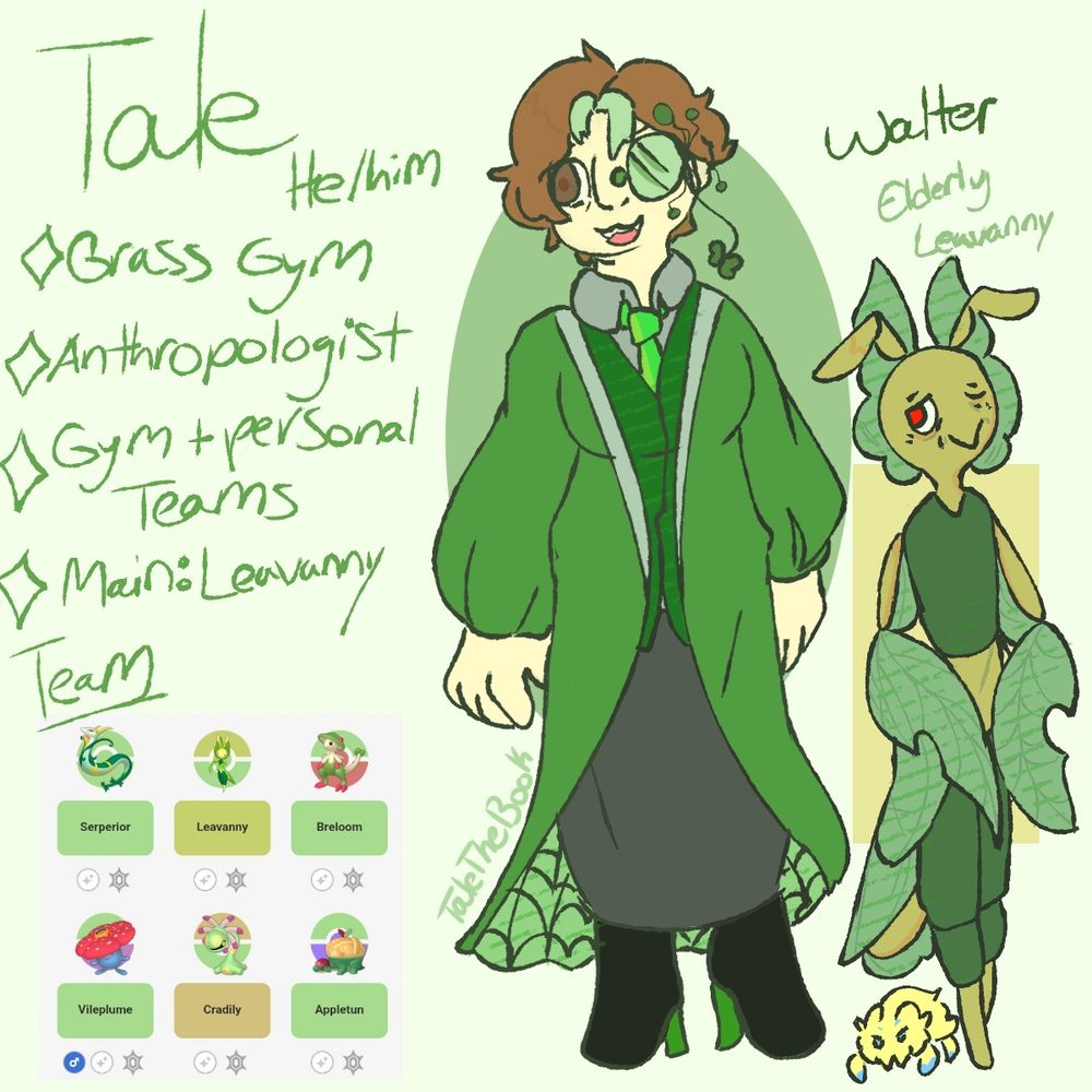 Constantly switching between regions to research the past, Tale works as a grass gym in Kalos as the successor to Ramos as his main job!