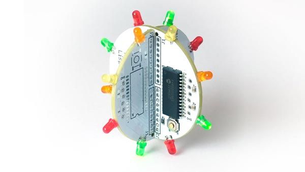 The Bauble is a spherical festive decoration, based on an AVR32DD28, with 16 coloured LEDs that you can program to flash in different patterns: www.technoblogy.com/show?4O86
