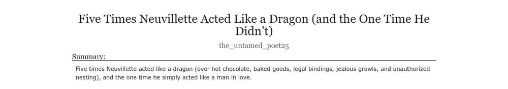 Hey everyone! I posted another soft #wriolette / #Neuvithesley oneshot. It's called Five Times Neuvillette Acted Like a Dragon (and the One Time He Didn’t). Go check it out! <3