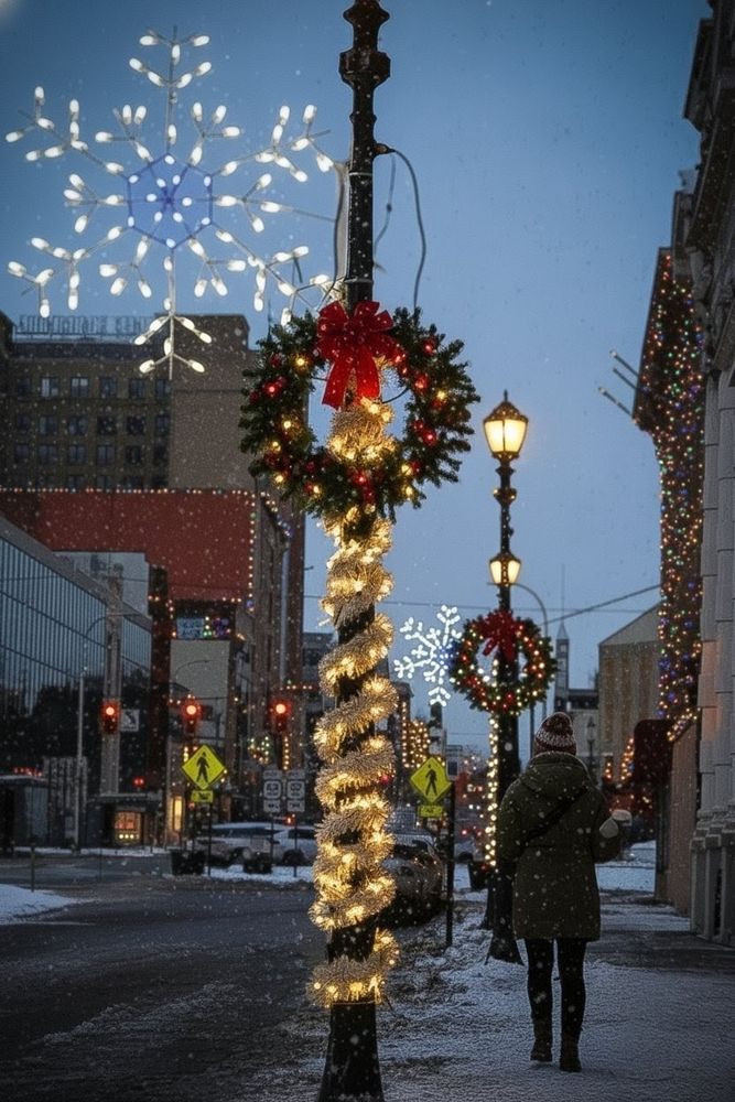 #holidays #utica #ny #baggssquare #lights #christmas #coffee #onewaystreet #night #snowflake #streetphotography