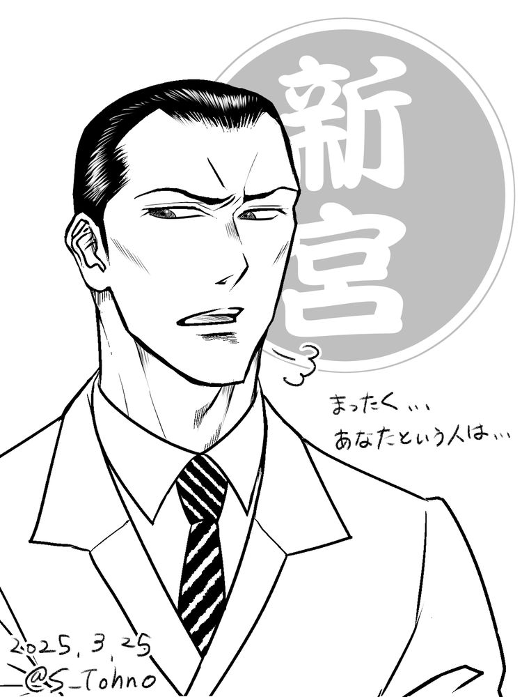 最近オリジナル男性キャラのイラスト色紙のための練習をしています。リハビリと楽しみのためにやっています。
