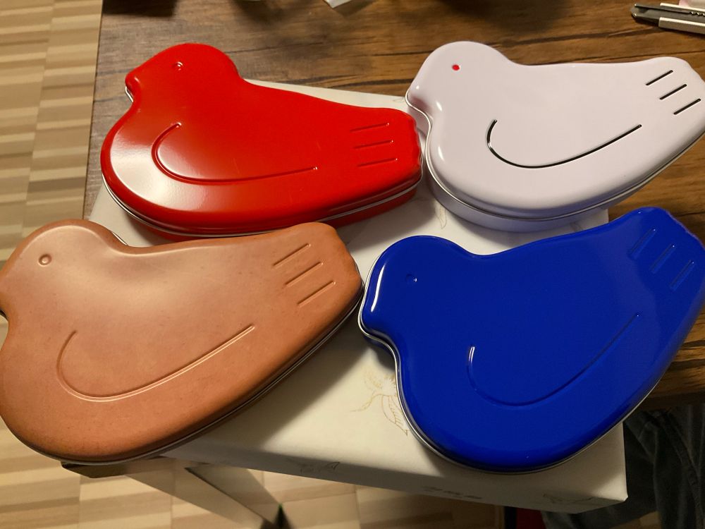 (文鳥の日に鳩の日の缶届いた)