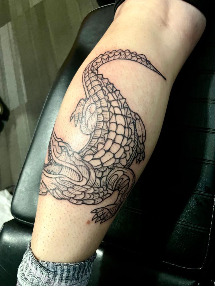 #instagood #birdbrainpdx #portlandtattoospecial #crocodiletattoo #crocodilians #reptiletattoos