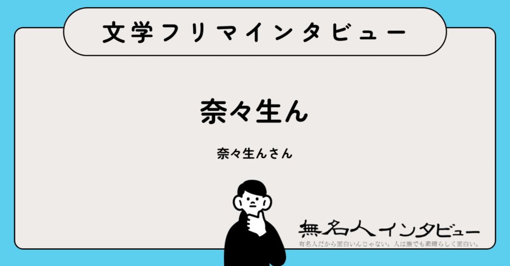 この記事は、文学フリマに参加する人たちのためのインタビュー。 今回参加いただいたのは 奈々生ん(なななまん) さんです! 屋号:奈々生ん(なななまん) 作者名:奈々生ん(なななまん) 参加イベント・ブース:文学フリマ東京41・B-85 HPなど:https://lit.link/nananaman 文学フリマカタログ:https://c.bunfree.net/c/tokyo41/1F/B/8...