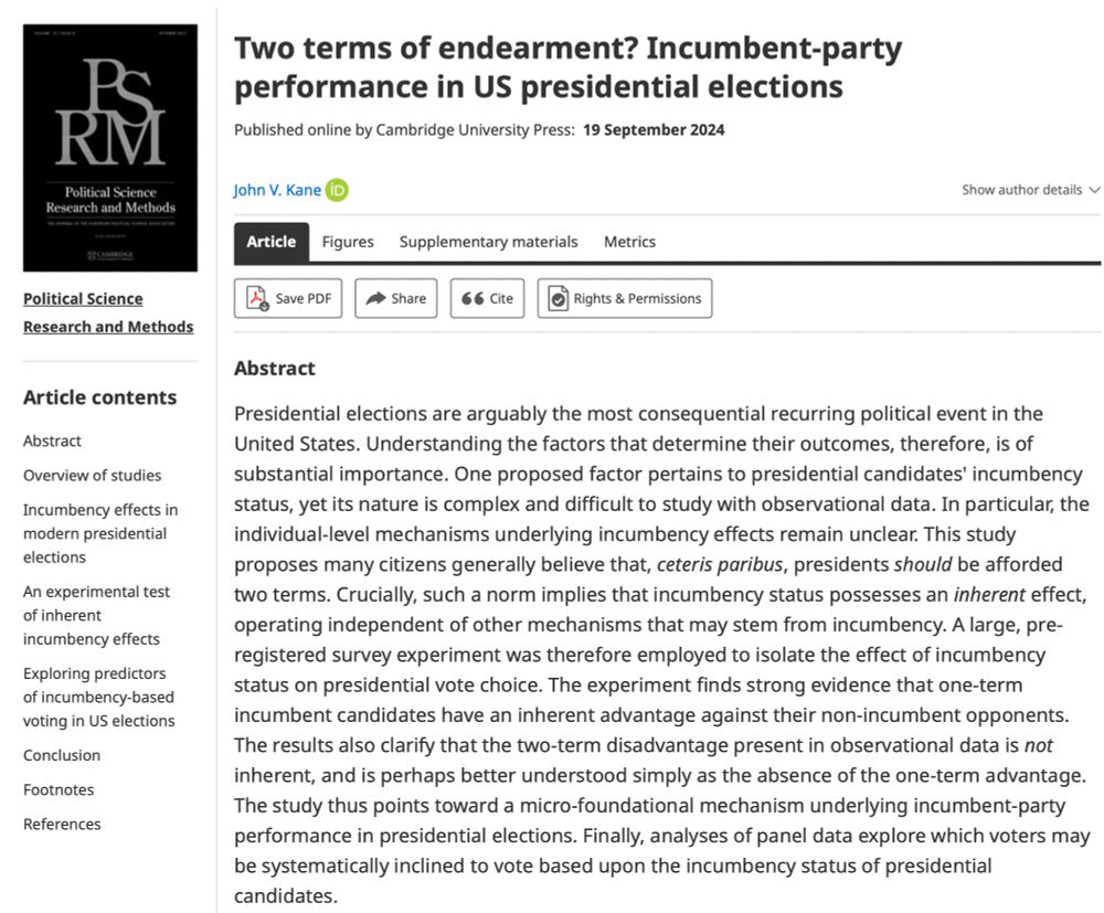 Two terms of endearment? Incumbent-party performance in US presidential elections | Political Science Research and Methods | Cambridge Core