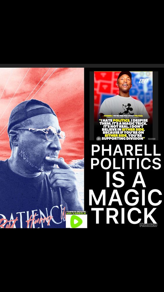 CSV #37 Pharell states that Politics is like a Magic Trick… Pharrell Williams says he ‘hates’ politics, calls it a ‘magic trick’. Funny how someone can call politics a magic trick but everything he in