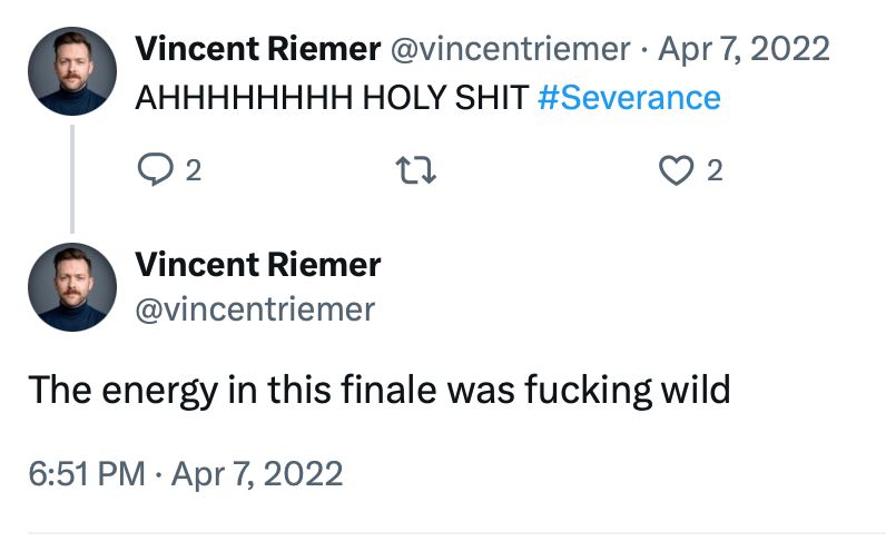 It's surreal seeing Severance coding memes making the rounds after feeling like one of the only people watching it back when S1 was airing and screaming my praise into what felt like the void