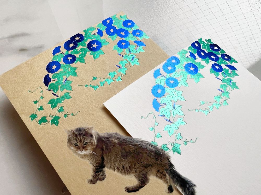 絵柄は同じですが、紙を変え、箔の色を変えたら、この艶めき!!