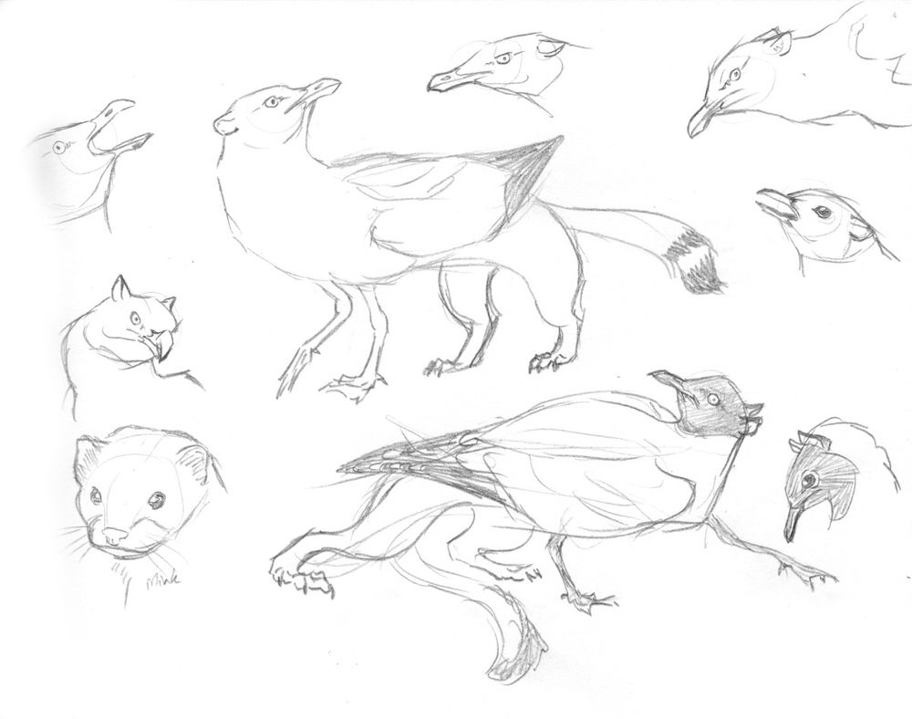 A quick gull gryphon and a batch of sketches. We had an excellent presentation from Amar Ayyash on Gull ID last night. Inspired me to try some gull gryphon ideas.