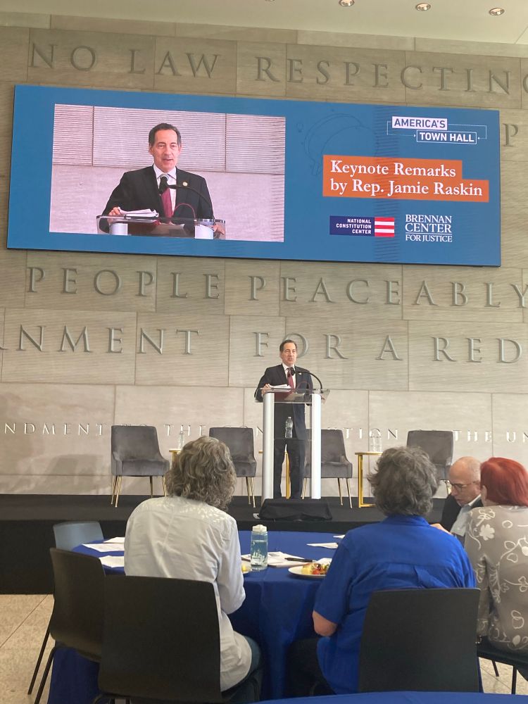 Jamie Raskin today at the National Constitution Center in Philadelphia in collaboration with the Brennan Center.