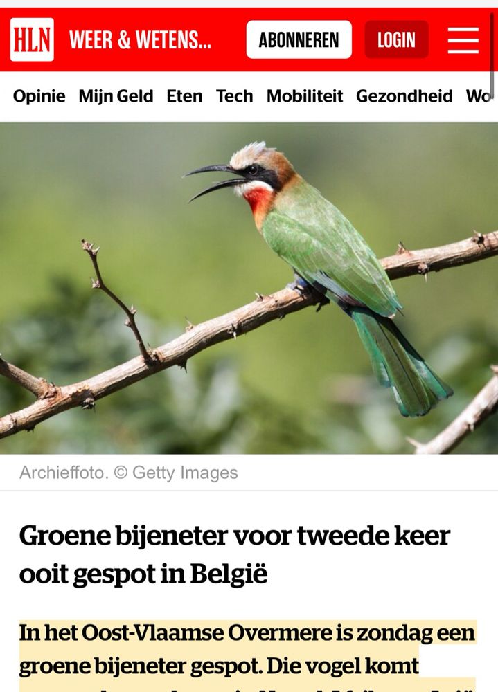 eentje voor de gevorderden (thanks Philippe Verbelen) www.vrt.be/.../groene-b... De eerste foto bovenaan het artikel is correct, maar waar ze het verschil willen aangeven tussen een groene bijeneter en een gewone staat geen 'groene bijeneter', maar wel een 'Aziatische kleine groene bijeneter'.