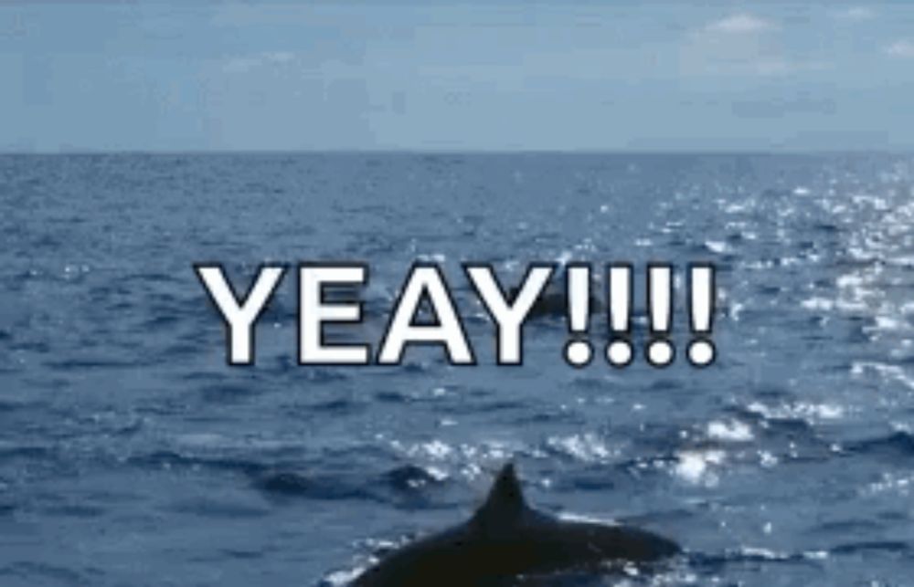 a dolphin is swimming in the ocean with the words yeay !!!