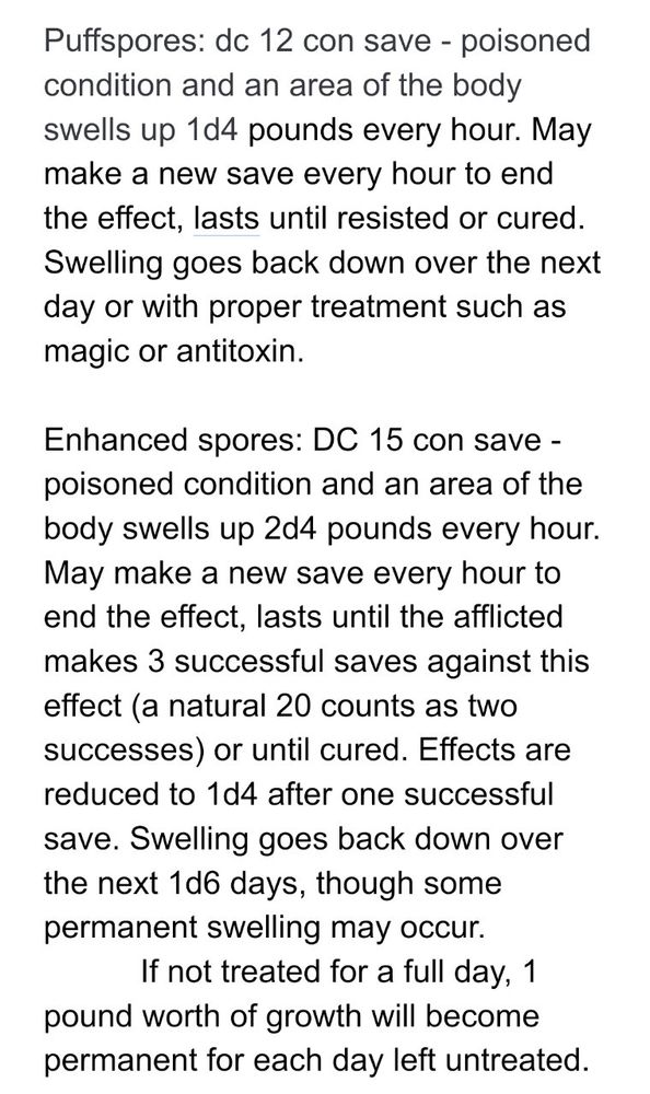 The specific effect happening in this pic was from my own creation, Puffspores. The text mentions pounds, but for intents and purposes of the game it was as if the body gained that same volume of whatever substance and effect uses (water, air, flesh, etc).