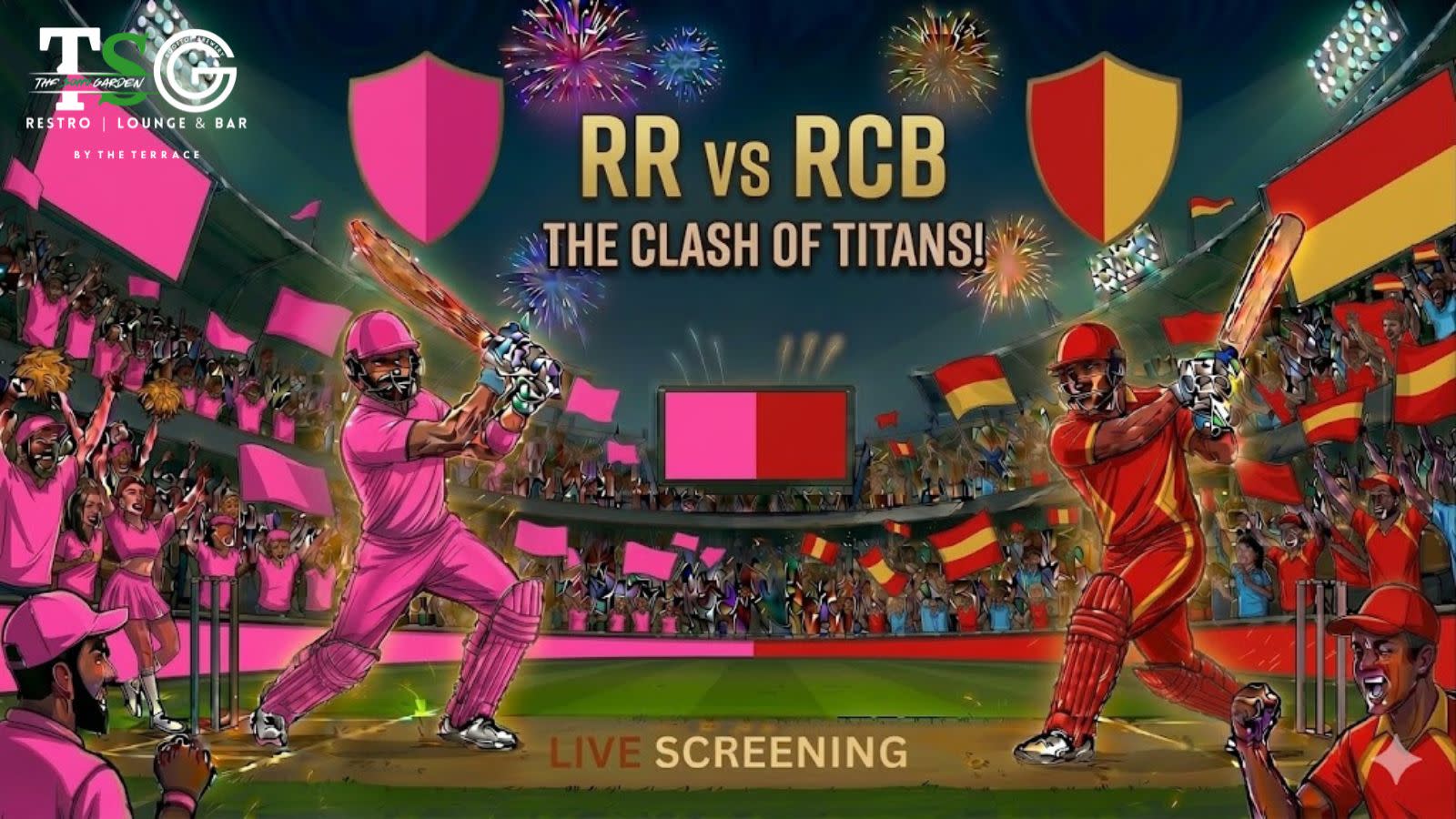 Watch RR vs RCB in IPL 2026 on giant screens at The Soho Garden, Ghaziabad. Enjoy high-energy crowd vibes, tasty food, and chilled drinks as Rajasthan Royals clash with Royal Challengers Bengaluru.