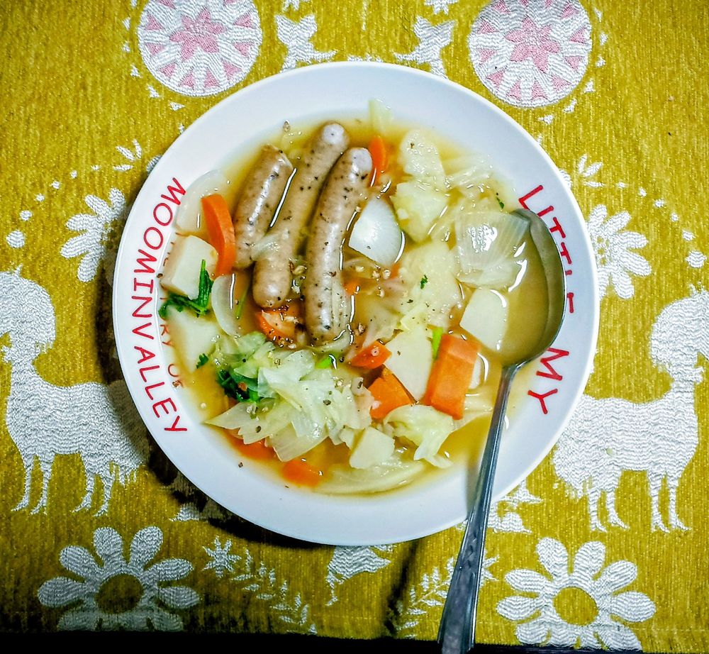 いつものポトフ。今の時期ジャガイモが美味しい。「となりの宮廷料理人」でも書いた事ですがローレルやブラックペッパーだけでもオーガニックのちょっと高い物を使うと香りが違います。