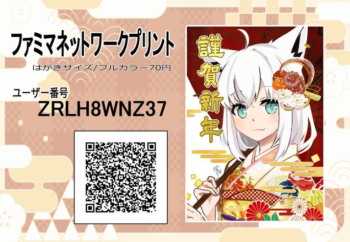 フブちゃんのお正月イラストをファミマネットワークプリントに登録させていただきました!