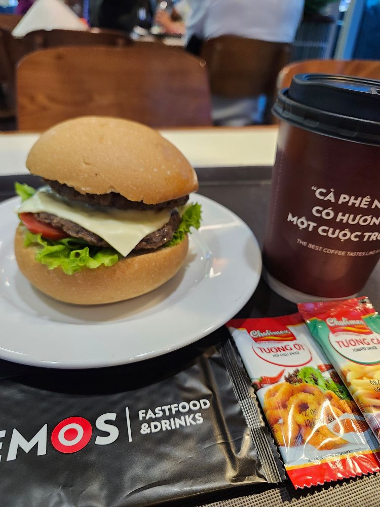 空港に早く着きすぎたので、残ったベトナムドンを消費するため、バーガーとアイスコーヒーをいただいています🍔☕