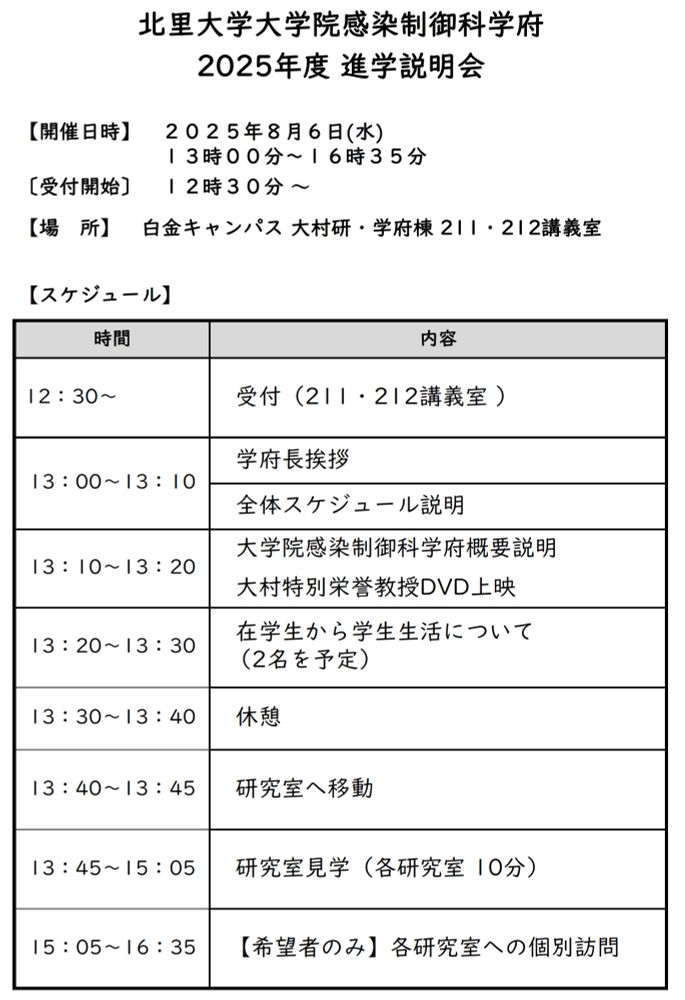 25日に行われる研究室見学には、もちろん私たちの「感染免疫学研究室」も参加します。