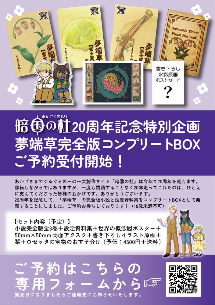 経済的な事情により、「20周年記念夢端草コンプリートBOX」の生産を限定10セットにすることにしました。詳しくはこちらをご覧ください。