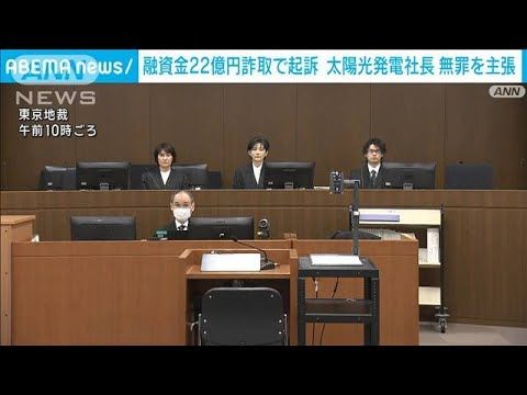 融資金詐欺事件 初公判 太陽光社長は無罪主張 “取り調べで侮辱”検事を刑事告訴(2024年11月13日) 金融機関からおよそ22億円の融資をだまし取った罪などに問われている太陽光発電関連会社の社長が、初公判で無罪を主張しました。 太陽光発電関連会社「テクノシステム」の社長・生田尚之被告(50)は、金融機関からおよそ22億円をだまし取った詐欺の罪などで3年前に起訴されました。 東京地裁で13日に開かれた初公判で、生田被告は「返済の意思を持っていました。私は無罪を主張します」と話しました。 検察側は冒頭陳述で「事業開発の見込みがないのに融資を受けた」などと指摘しました。 一方、生田被告は、黙秘権を行使したにもかかわらず違法な取り調べを受け侮辱されたとして、担当した検事を特別公務員暴行陵虐の疑いで13日、東京高検に刑事告訴しました。 生田被告は国に損害賠償を求める民事裁判も起こしています。 https://news.tv-asahi.co.jp