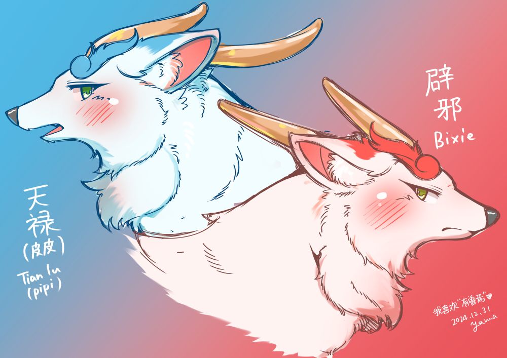 描き納めrkgk…というわけで中国のアニメ「有獣焉(獣あらんや)」より、貔貅兄弟(天禄と辟邪)を描きました