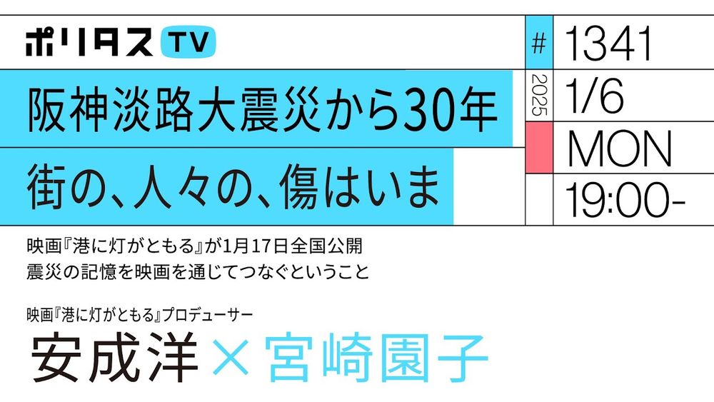 【ポリタスTV 1/6】1️⃣阪神淡路大震災から30年2️⃣クラファン制作映画が1月17日公開3️⃣被災地・被災者のため、映画にできることミナトスタジオ代表の安成洋さん@sungyangahnに、宮崎園子@sonoko_miyazakiが伺います。映画『港に灯がともる』公式サイトhttps://minatomo1...
