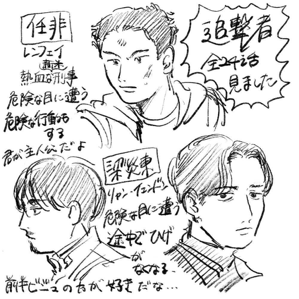 土日で中国台湾ドラマ落書き4枚描いてた