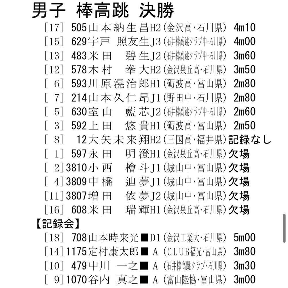 【2025 北信越インカレ(秋)】結果