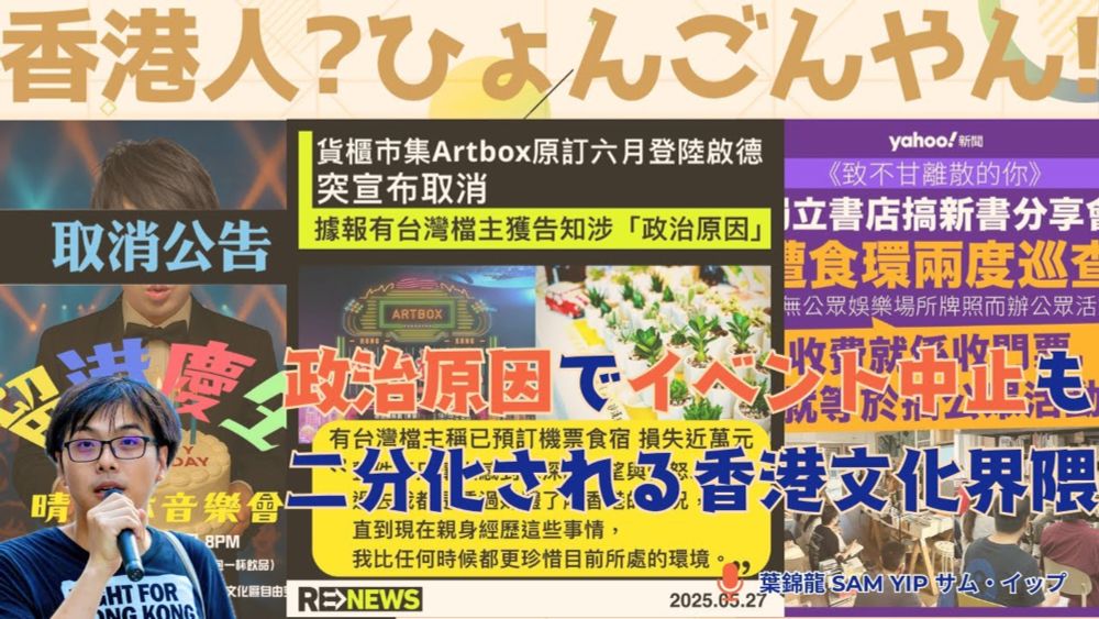 芸能人のコンサートで盛り上がる一方、スポットライトの当たらない所では、中国共産党政権による香港文化・芸能界の分断工作が今も続いている。今週だけでも少なくとも2件、理由不明のイベント中止。独立系書店の新刊発表も、不要だった「ライセンス申請」が突然要求される事態に。今晩23時半、#香港人ひょんごんやん で語ります!