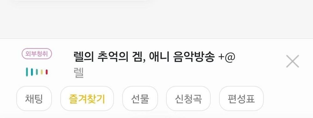 주력은 추억의 애니, 게임음악. 앱 상에 검색해서 나온 방송 헤더 헤드폰 모양 누르면 음악 나옵니다.
