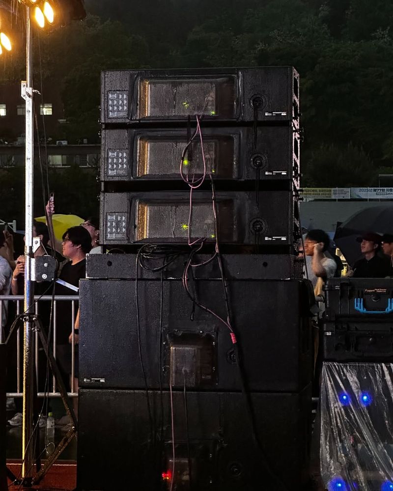 레더비가 DJ 부스·사운드 시스템·조명 장비를 세팅해, 빗속에서도 끊김 없는 공연을 만들어냈습니다.