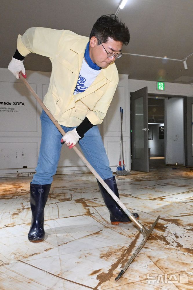 광주 수해복구 봉사하는 박찬대 의원