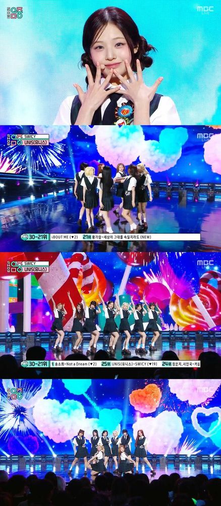 ‘SWICY’는 두 번째 미니앨범으로, 지난달 15일 발매 후 꾸준한 사랑을 받았다. 귀여운 아케이드 사운드와 매콤달콤 콘셉트, 음식에 비유된 재치 있는 가사는 유니스만의 개성을 보여줬다. 한편, 이날 ‘인기가요’에는 유니스를 비롯해 넥스지, 미야오, 박우진, 스킨즈, 82메이저, 엔시티 위시, 오드유스, 카이, 캣츠아이, 투모로우바이투게더, 투사계, 투어스, 트렌드지, 하이라이트, 힛지스 등이 무대를 꾸몄다.
