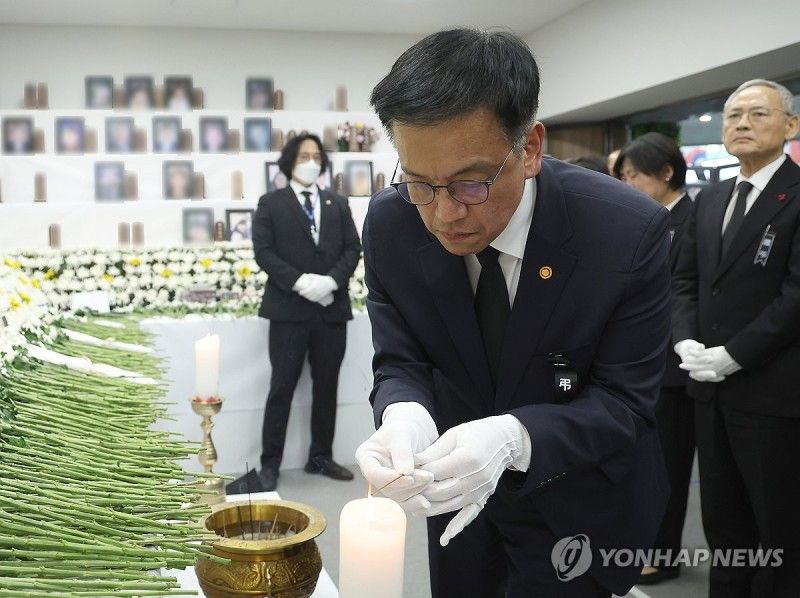 29 декабря и. о. президента Южной Кореи Чхве Санмок объявил траур по жертвам авиакатастрофы в уезде Муан-гун. Он также сообщил, что в Муане и ещё в 17 городах и провинциях будут установлены мемориальные алтари (합동분향소).