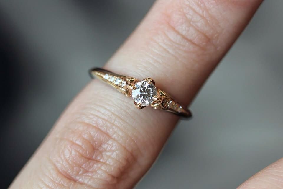 横顔美人の繊細で美しい婚約指輪。