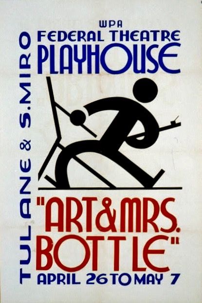 *Art & Mrs. Bottle* [Playwright Benn W. Levy] #WPA Federal Theatre Playhouse, Tulane & S. Miro [Los Angeles] April 26 to May 7 [1936]. Color silkscreen. [California: #FederalArtproject]. Ca. 1936.