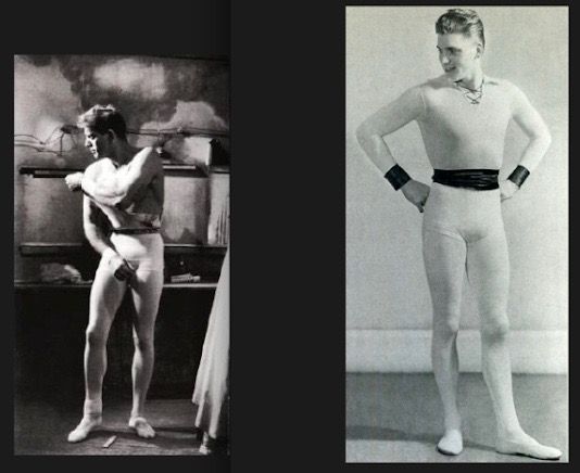 Here below, #BurtLancaster in the movie *Trapeze* (left), and in his WPA Circus days.
