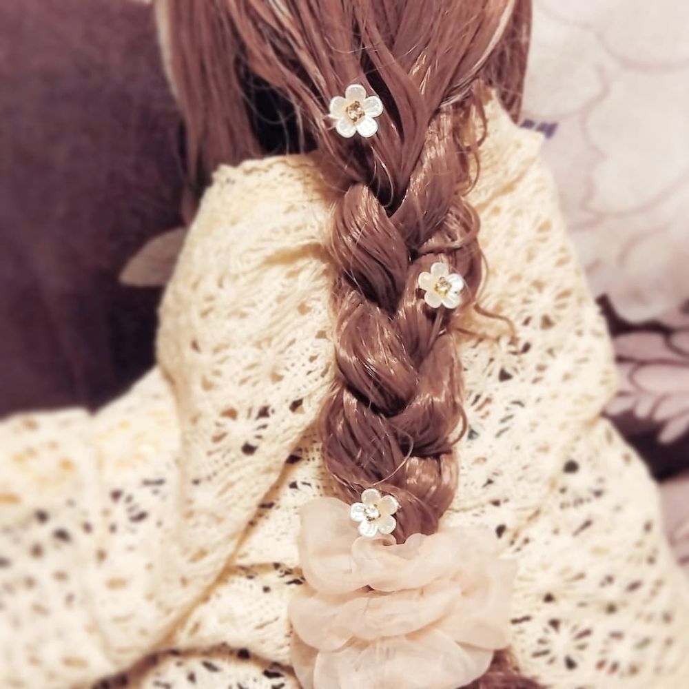 ドライフラワーの青を仕込んだアイが可愛くてお嬢に付けてみました✨光入るといい感じ(ㅅ´ ˘ `)♡