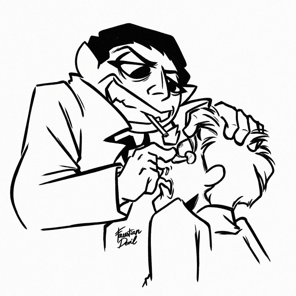Young Sneekly and Top Cat. Insane ass to have a meet-cute while one party is facing a murder charge and the other one is the assigned lawyer. I based their looks on Alec Guinness and Arnold Stang. 👨‍⚖️😼