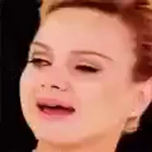 ALT: a close up of a woman 's face with a black background .
