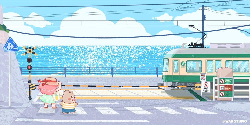 My most daring illustration with a full background to date! 🥺 I really love the contrast of nature with modernity in Kamakura, Japan. The Enoden train against the backdrop of the sea is simply gorgeous. I can't believe I put off going to this location for so long and I'm glad I finally got to visit.