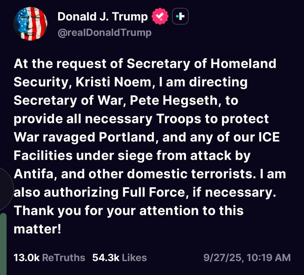 The so-called #CommanderInChief has unleashed his #DepartmentOfWar against us. It’s official: We the People are under siege by our own government. #Portland #TrumpDictatorship #GOPFascism #AmericanFascistParty #GOPGestapo #TaxDollarsAtWork #AmericaInDanger #AuthoritarianAlert