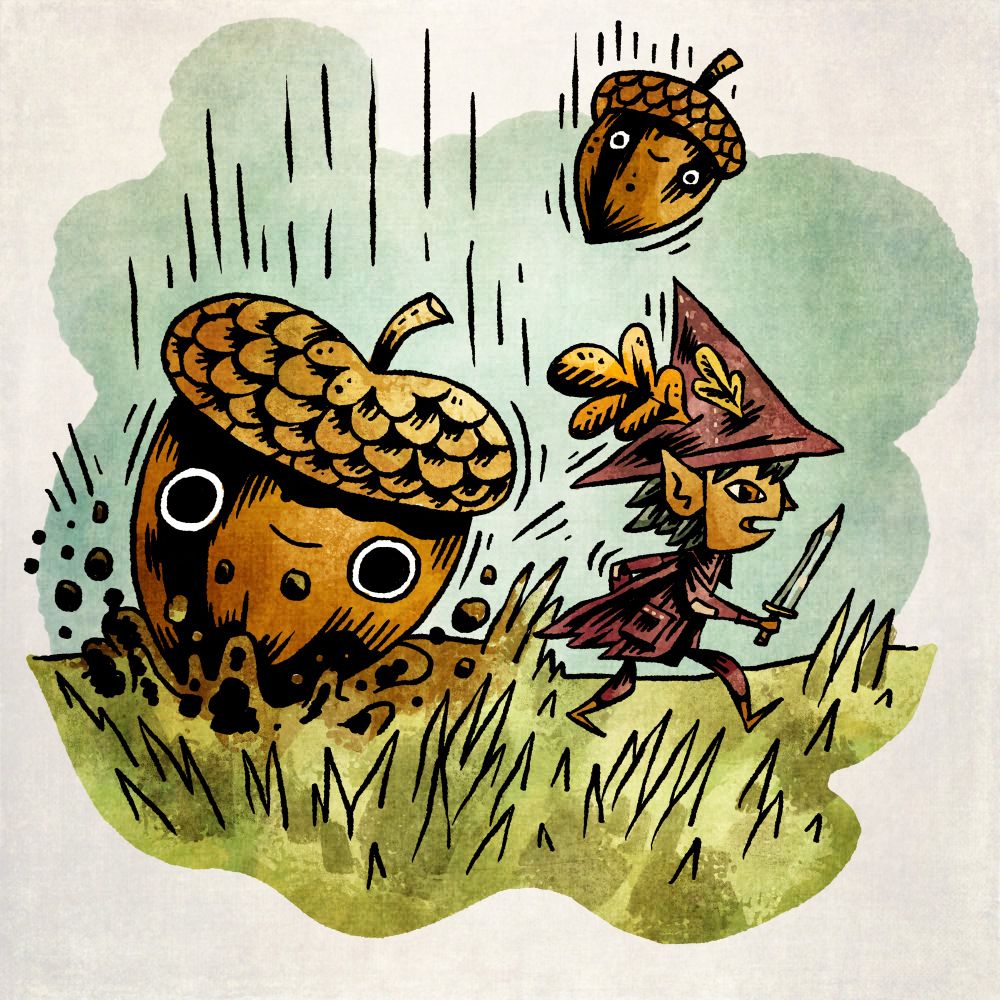 Watch out, tiny gnome! It’s acorn season!