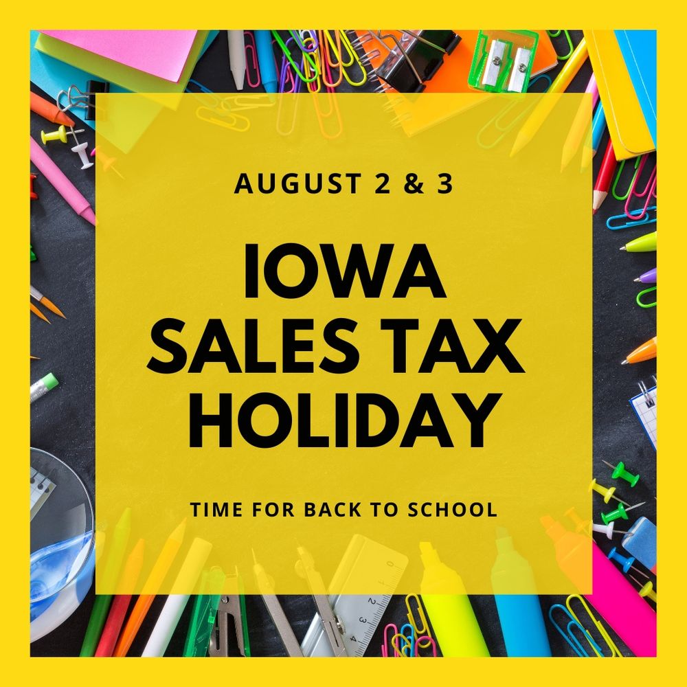 LOWERING COSTS FOR IOWANS: Do your back-to-school shopping during the annual sales tax-free holiday, Aug. 2 & 3. This year @iowahousedems proposed extending the holiday to two weeks instead of two days! More about the tax-free holiday: tax.iowa.gov/iowas-annual-sales-tax-holiday
